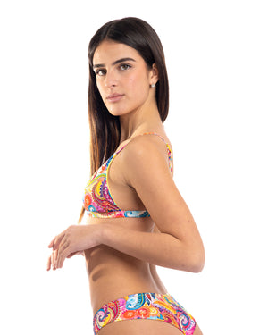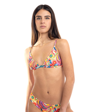 Triangolo STROMBOLI con coppe estraibili in memory foam che si adattano perfettamente al tuo corpo. Regolabile sia al collo che alle spalle per una vestibilità personalizzata, con ulteriore regolazione al torace per il massimo comfort. Le coppe removibili offrono praticità e versatilità. Ideale per chi cerca un bikini top che combina funzionalità, comfort e stile elegante in un unico capo.